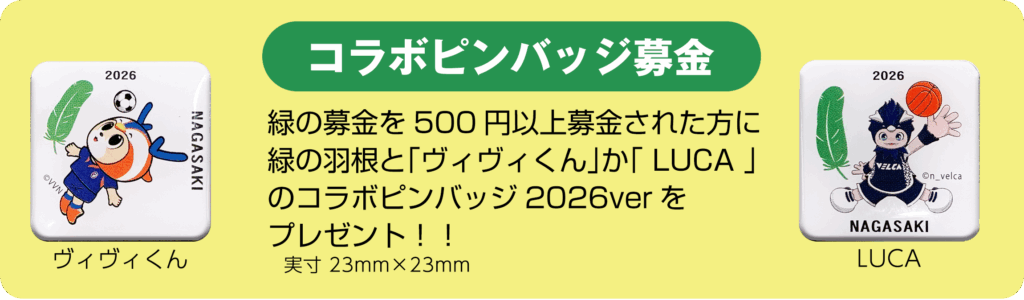 Vファーレン長崎・長崎ヴェルカと緑の羽根コラボピンバッジ募金【お申込み】